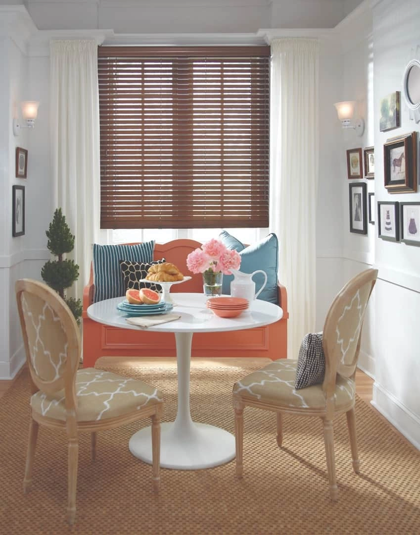 Custom wood shutters, such as Heritance® Hardwood Shutters, are perfect for making your living room or dining room feel especially connected to your forested surroundings. Plus, you’ll love how warm your wood window coverings make your home feel during the gray days of the winter and spring.