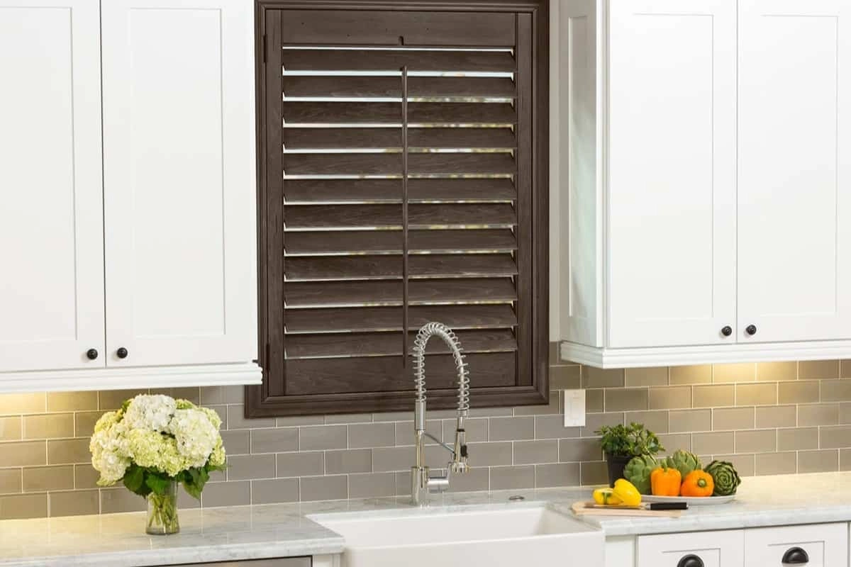 Wood is always our first recommendation for material because of its beauty and durability, but hardwood isn’t the most practical choice for every room. Rooms with a lot of humidity and moisture, like bathrooms or kitchens, will cause hardwood plantation shutters to warp and crack. In these rooms, we recommend NewStyle® Composite Shutters which are great for busy spaces or Palm Beach™ Polysatin™ Shutters. The innovative compound used to manufacture our Palm Beach™ shutters is guaranteed never to crack, chip, fade, or warp even under the most extreme conditions - our Palm Beach Promise™.