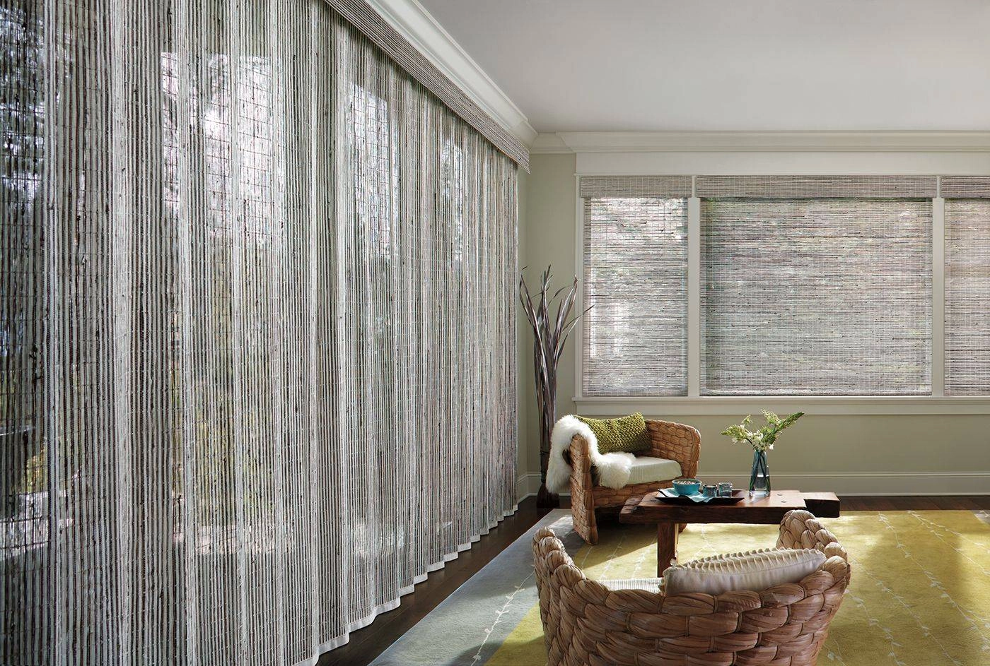 If you have a green thumb, there’s no better place for your houseplants than near a bay window. Smaller pots can be placed right on the sill, and you can put more robust plants, like potted trees, on the floor at the ends of the window or on small console tables. Greenery adds depth and texture to a space and is an ideal complement to the natural beauty of Provenance® Woven Wood Shades. Woven shades gently diffuse light and have a unique, variegated appearance from the grasses, reeds, and bamboo used in their construction.